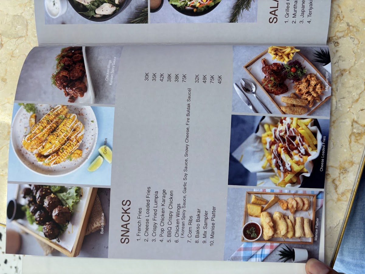 - Main dishes: This category features Indonesian staples such as bakmi goreng, seafood options like spicy crispy dory, and a variety of bowls including salmon bowls. Grilled chicken salads are also available for lighter meal options.
